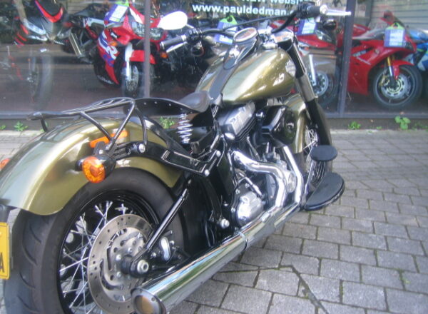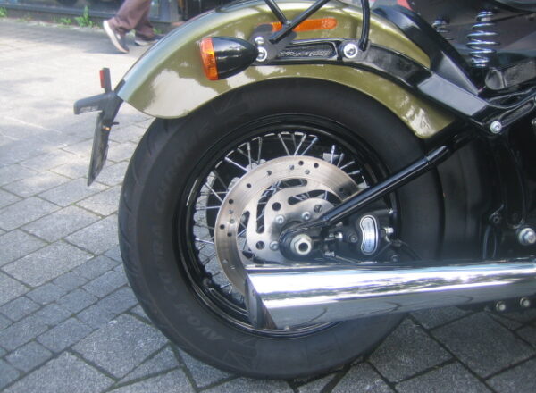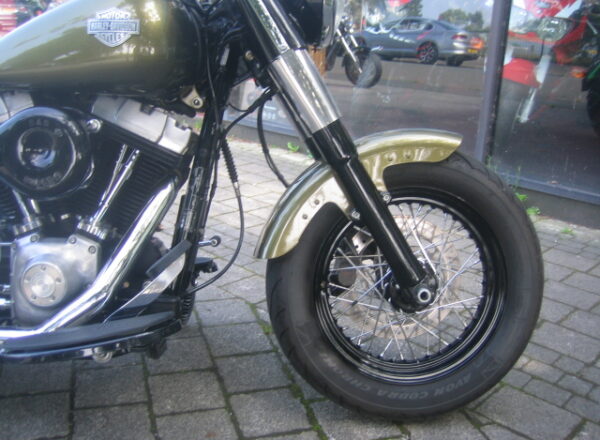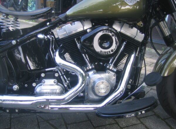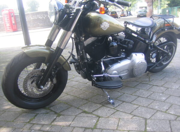 A really lovely Harley Davidson, This Heritage Soft-tail Slim looks fabulous in Golden Green, Black wheels, blacked out engine centre cases with brushed outer engine cases. Supertrapp exhaust system.